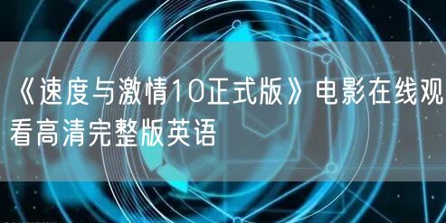 《速度与激情10正式版》电影在线观看高清完整版英语